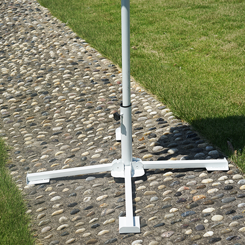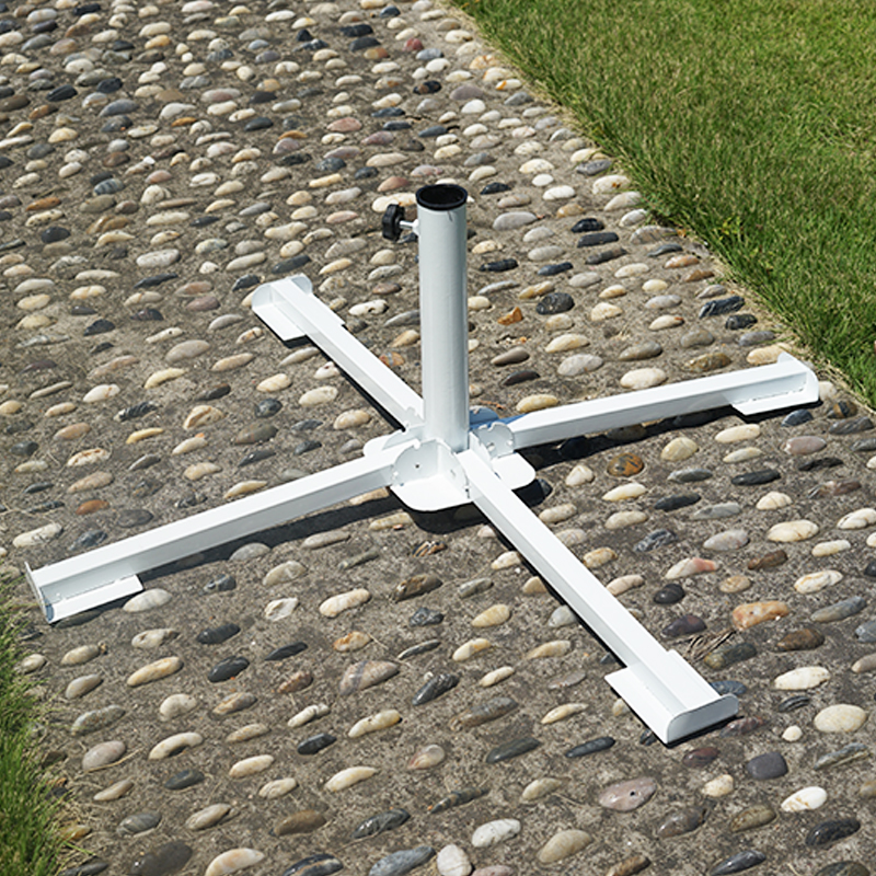 Glacann an scáth-bhonn-bonn UA1924 dearadh tras-chruthach simplí agus galánta, agus tá an struchtúr foriomlán cobhsaí. Féadann sé meáchan an scáth -cuaille a scaipeadh go héifeachtach agus a chinntiú go bhfanann an parasol seasmhach i ngach coinníoll aimsire. Déantar na ceithre arm tacaíochta den bhonn a dháileadh go cothrom chun ardán tacaíochta seasmhach a chruthú, ar féidir leis cosc ​​a chur ar an parasol go héifeachtach ó ghaoth láidir.