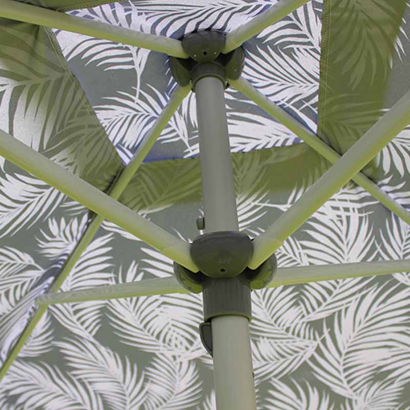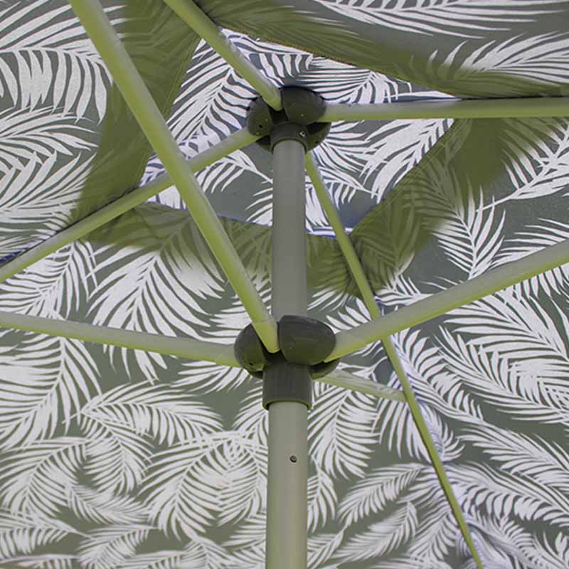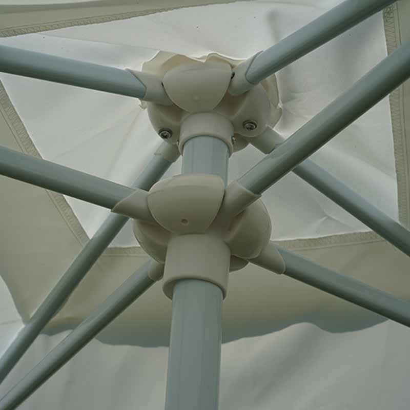 Struchtúr sturdy agus durable: Tá an príomhphoill déanta as ábhar cruach 32mm trastomhas, atá sturdy agus cobhsaí, atá in ann gaoth agus meáchan níos mó a sheasamh, agus cuireann 4 easnacha cruach (trastomhas 12mm, fad 18mm) tacaíocht bhreise ar fáil lena chinntiú gur féidir leis an parasol fanacht seasmhach i ngach coinníoll aimsire.