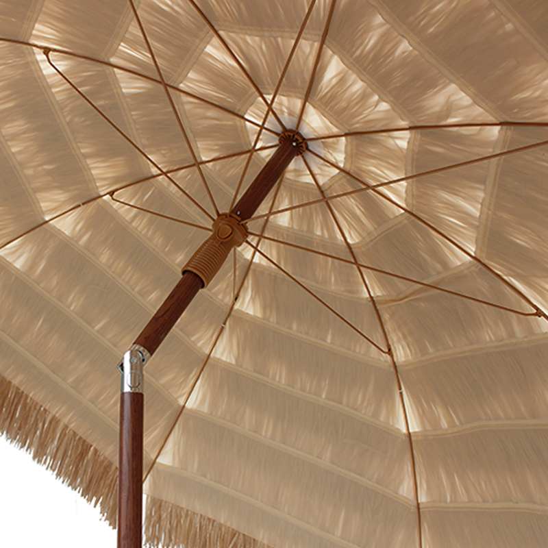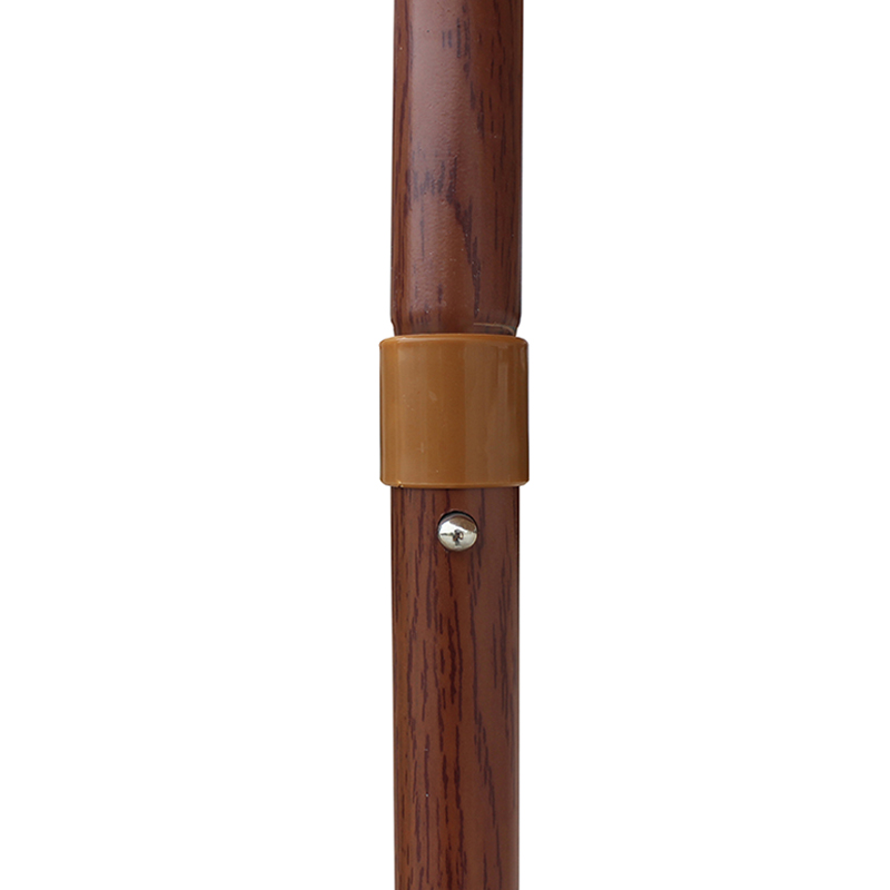 Bailchríoch cosúil le adhmad: Glacann cuaille agus easnacha an pharasóil bailchríoch cosúil le adhmad, atá álainn agus buan. Ní hamháin go gcuireann an dearadh seo le cuma fhoriomlán an pharasóil ach go gcomhordaíonn sé freisin le stíleanna troscáin agus maisiúcháin éagsúla lasmuigh.
