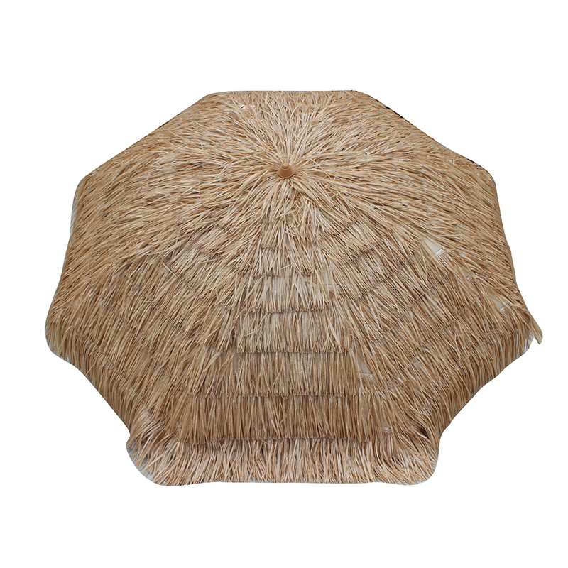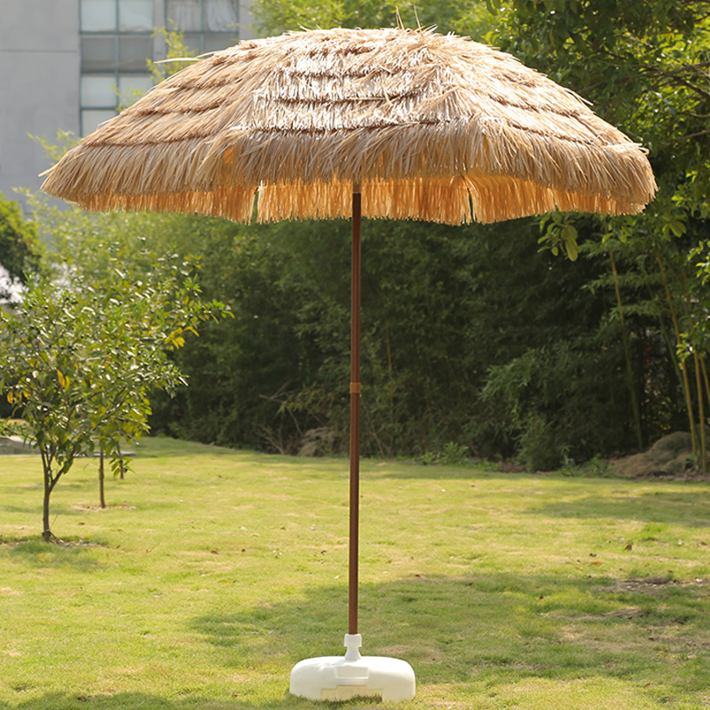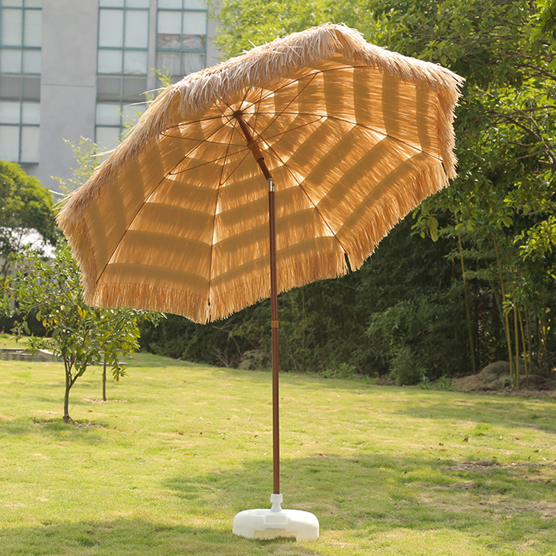 Cuma tuí: Baineann an parasol seo úsáid as féar PP mar an fhabraic, ag ionsamhlú uigeacht agus cuma tuí nádúrtha, ag cruthú atmaisféar nádúrtha agus tuaithe. Cibé an bhfuil sé curtha ag an linn snámha, sa ghairdín, nó ar an PATIO, is féidir leis an timpeallacht máguaird a chumasc agus mothúchán trópaiceach a thabhairt.